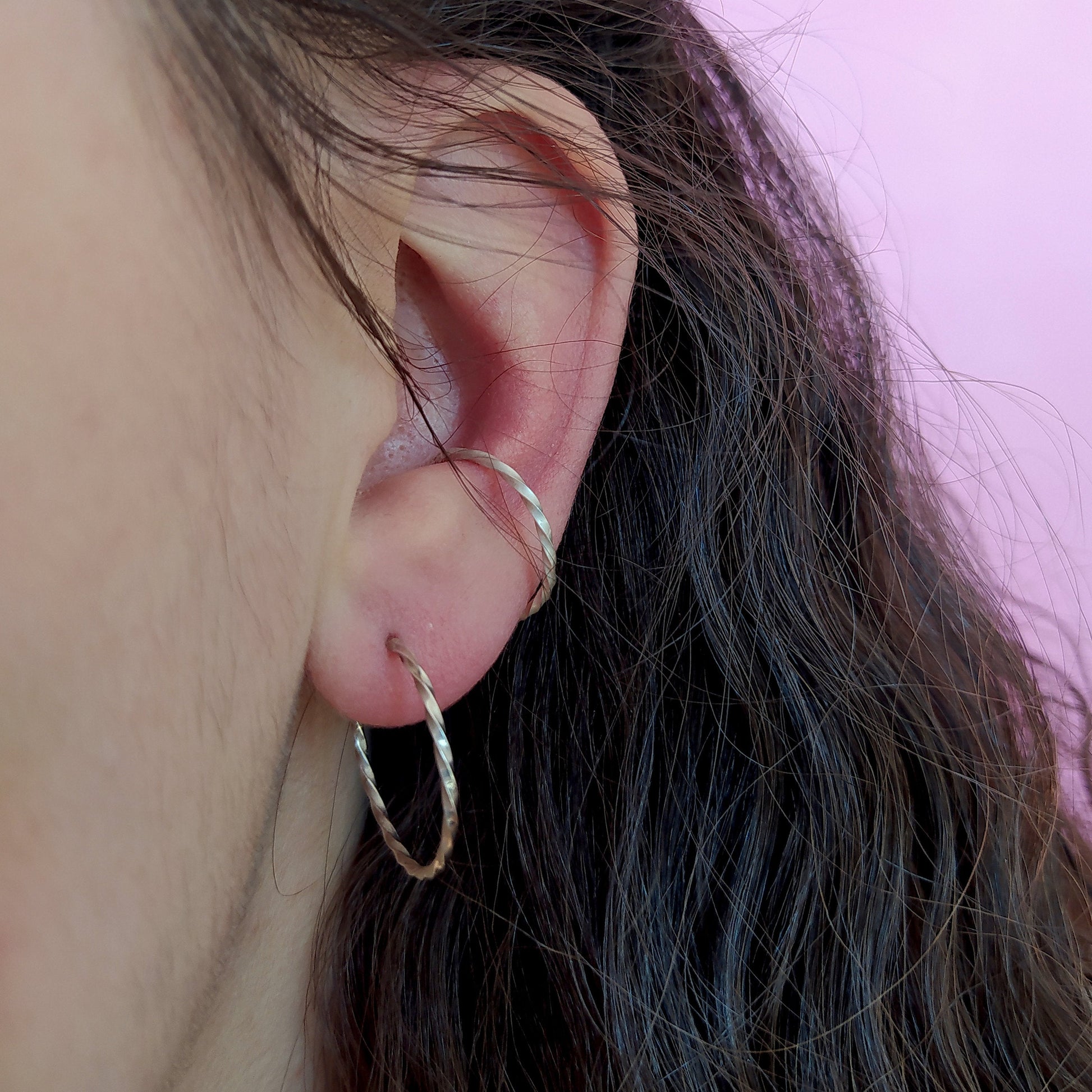 The Mona earcuff matches our TWISTED hoops perfectly.